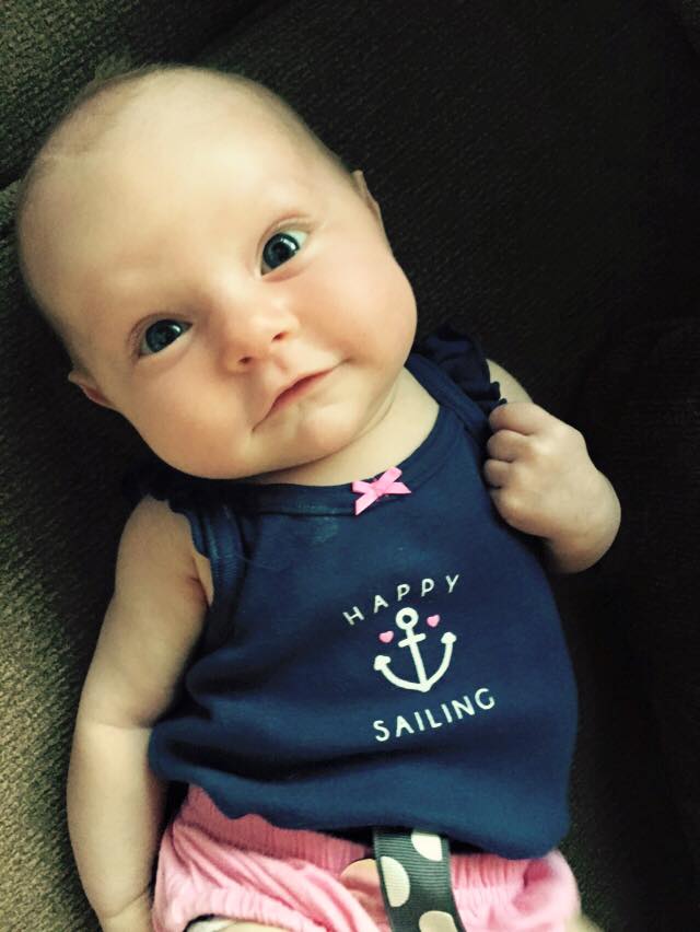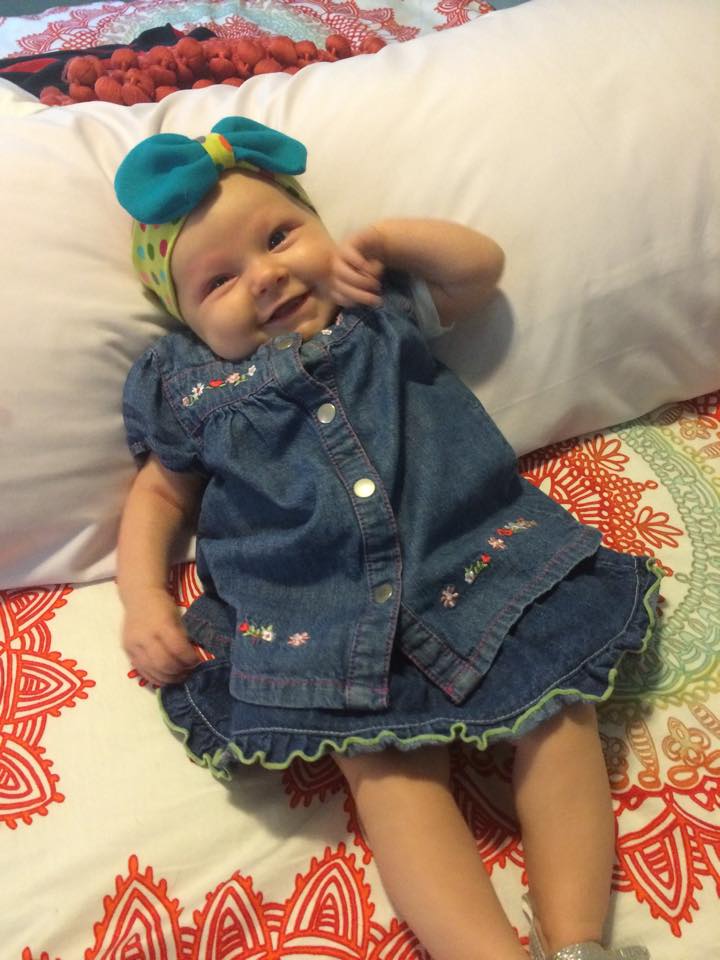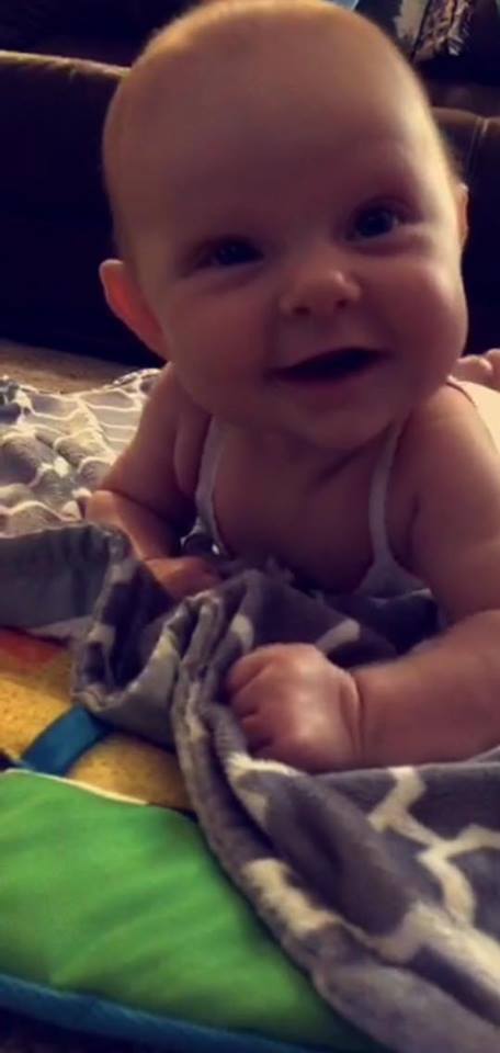 Back to the smiles, DH is loving to chat back and forth with mommy and daddy recently. She has rolled over, been sleeping through the night for a few weeks now, tries sitting up when laying in my lap, and really enjoys spending time with lots of family. The first night she slept through the night, my hubby and I both checked multiple times to make sure she was still breathing. She has always been a good sleeper-I’m a firm believer of the Swaddle Me sleepers- she sleeps so well for us when she wears it. That 23 inch body has outgrown the size small so we recently have moved into the next size. I highly recommend these swaddlers. As much as I always wanted to rock my baby to sleep- I knew from working with infants that they soon will rely on that motion to put them to sleep. My husband and I had agreed that we would let her fall asleep on her own so that within months of her life she was a good sleeper. Let me say, it has worked out tremendously. We love that she sleeps between us in a co-sleeper and that she will fall asleep on her own and stay asleep.