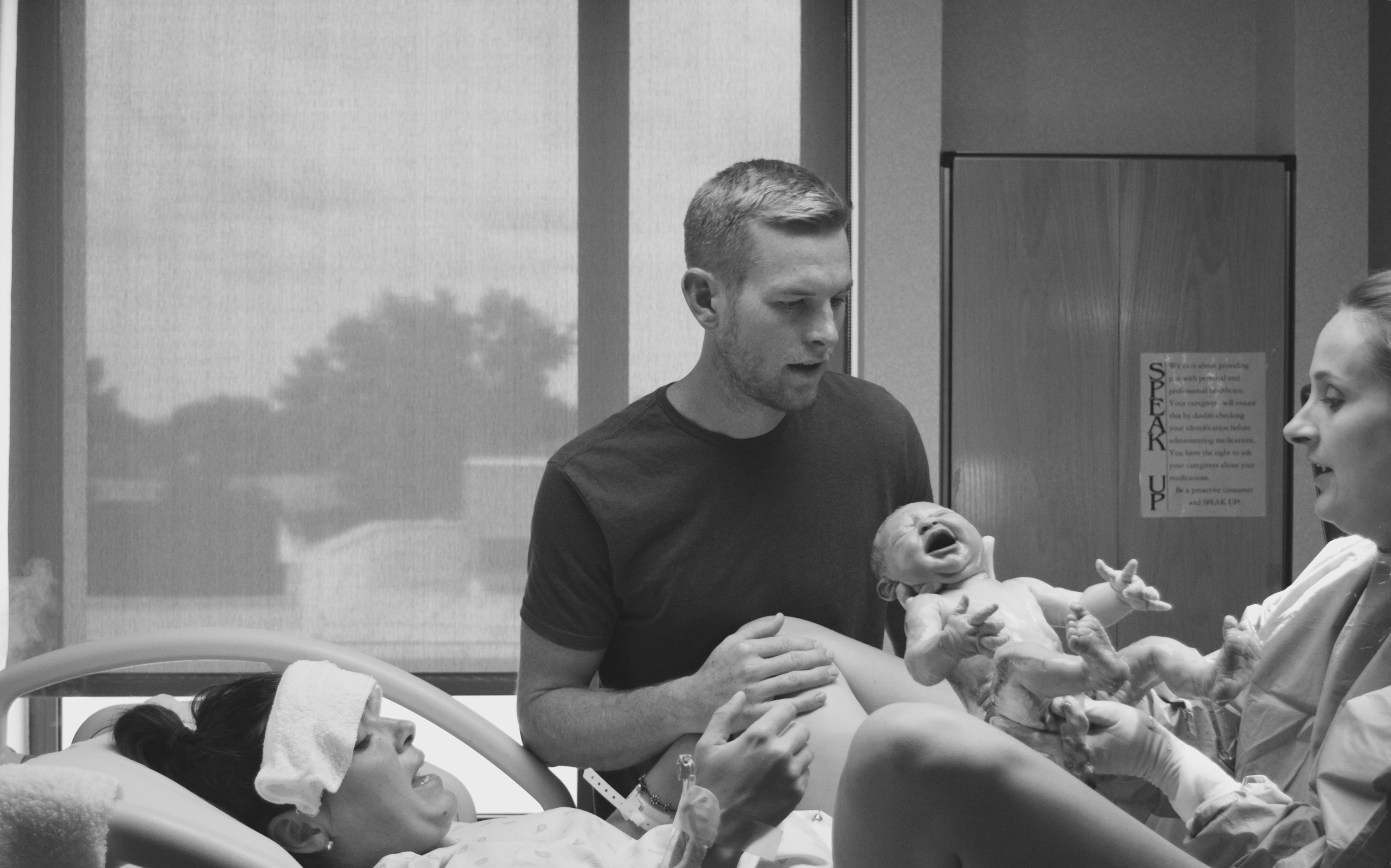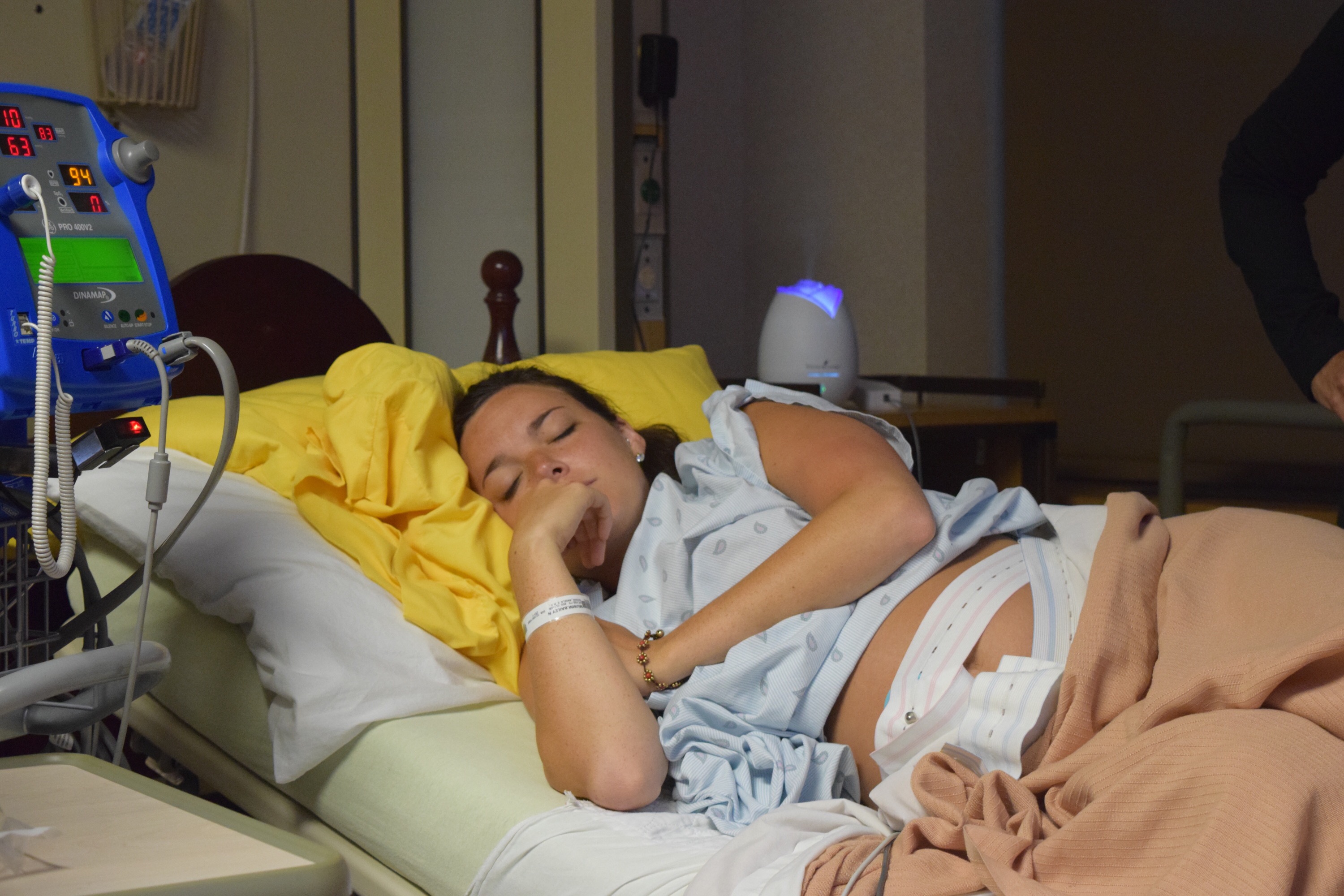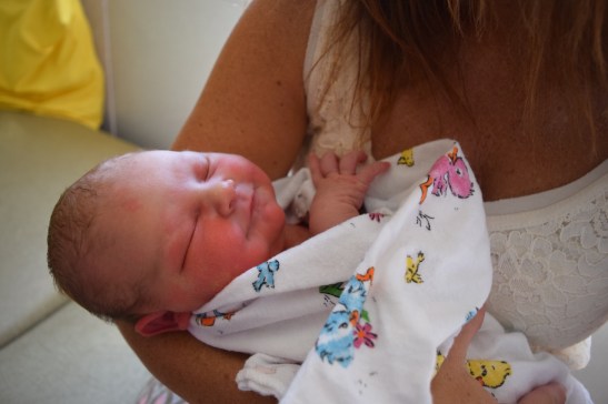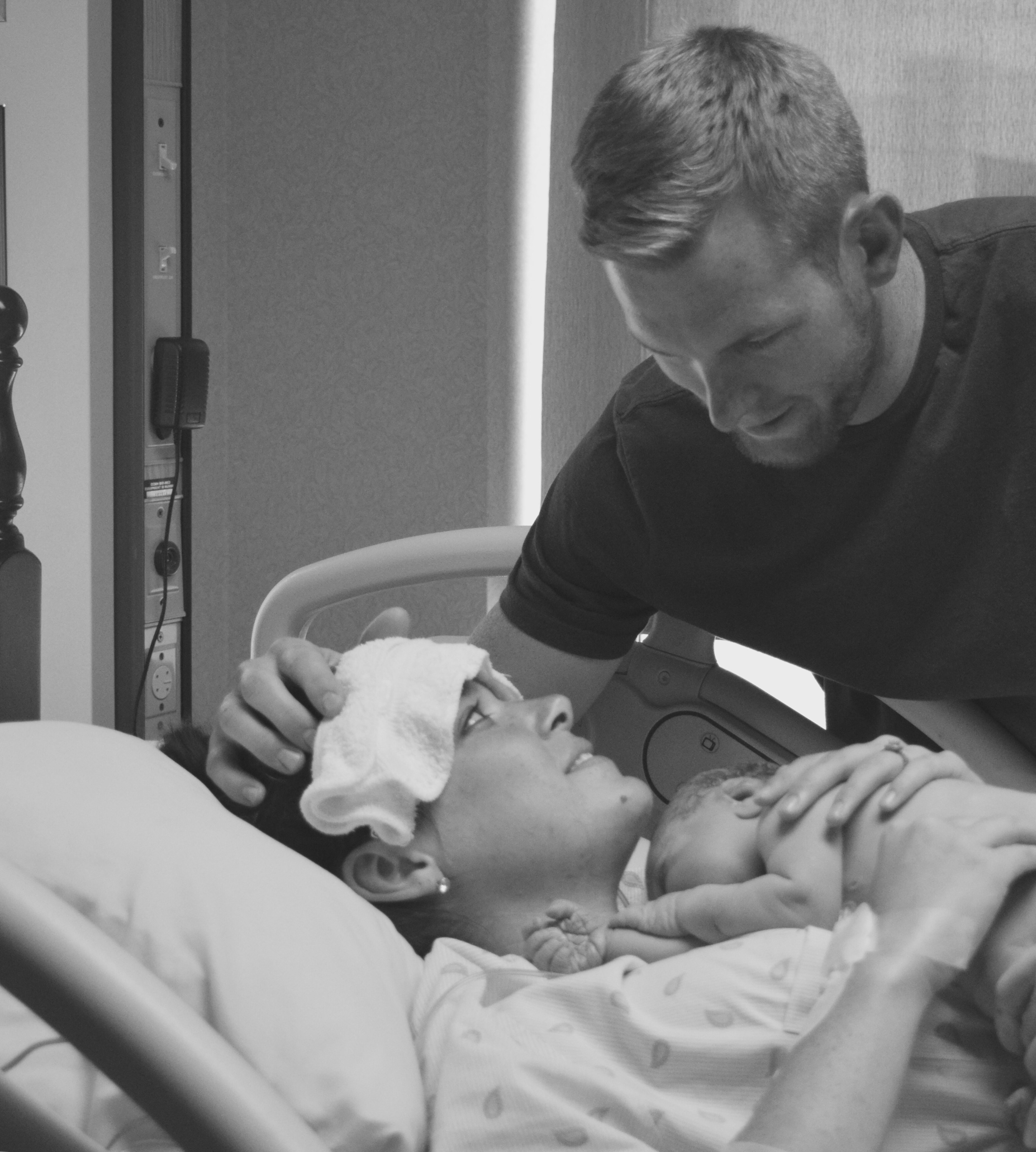 So, on July 7th, after the sweep, I went on a small walk and then ate dinner with my family who was in town (except for my brother). Around 8pm, I started feeling stronger and different contractions than the normal Braxton Hicks. I knew it had to be it. From 8-11 pm I started really feeling them come on. My husband kissed me goodnight thinking he’d have to wake up and go to work in the morning. Boy was he in for a surprise when I called him on his cell phone from the bathroom at 2:30 am. I hadn’t gone to bed because I was in too much pain, squatting beside our bed to help reduce the intensity of the contractions. I was in the bathtub breathing my way through each growing contraction. I did just what I was supposed to..time them and wait until they were 5 minutes apart for an hour. He was still in a fog when I called him, so he wasn’t totally convinced I was in true labor because it hadn’t been an hour yet. I opted to call my mom who was just sleeping in the room next to the bathroom and told her I was ready. She got him, my sister, and my dad up and they hecticly got all our bags and things packed in the car. My sister, mom, husband and I headed to the hospital and checked in at 3:00am. Why they make you preregister at the hospital before you go into labor is beyond me. They still asked me what felt like a million questions before I could walk upstairs to the labor and delivery floor. My biggest fear was being told I wasn’t ready and that I would have to go home. I was so scared because at that moment it was the worst pain I’d ever experienced and I didn’t think it could get worse! When the nurse said I was 4cm dilated and able to stay, I felt relieved!